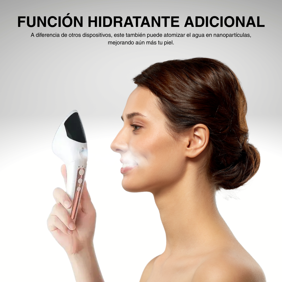 Proyecta microgotas ultrafinas que penetran en la piel, mejorando la absorción de serums y cremas. Resultado: piel intensamente hidratada y luminosa.
